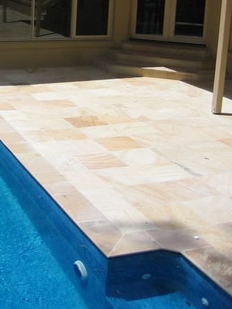 The mint sandstone used to create this coping is extremely durable and can withstand harsh weather conditions and heavy foot traffic, making it perfect for use in high-traffic outdoor areas. Additionally, the stone is naturally slip-resistant, providing a safe and secure surface even when wet.