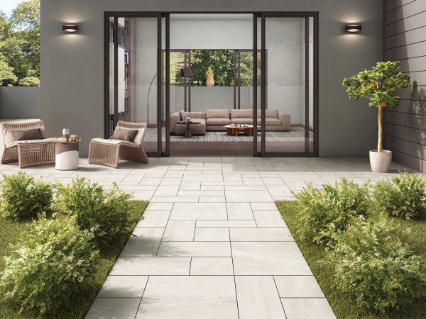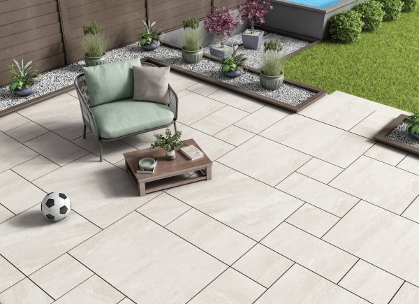Porcelain paving is made from clay, sand, and minerals baked at high temperatures. After firing, each slab is polished to ensure they are the same size and color. This process makes the slabs easy to lay and ensures your patio has a consistent look.