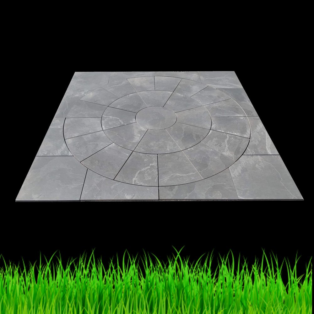 The Petra Slate Anthracite Porcelain Circle measures 2.70 meters with a square kit, features a 20mm thickness, and is made from high-quality porcelain. It comes in a sleek anthracite color and has an R11 Matt Anti-Slip surface for enhanced safety. The edges are sawn for a clean, precise finish. Each set includes one circle, making it a practical choice for stylish and functional outdoor paving.